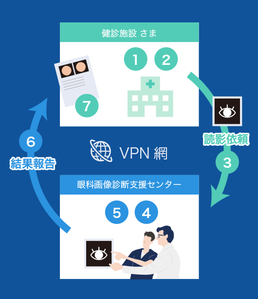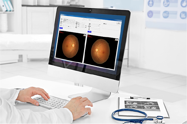 網膜疾患に強い眼科専門医が遠隔で読影し、スピーディーに結果をご報告します。デジタル化で安心・スムーズな運用をご提供いたします。