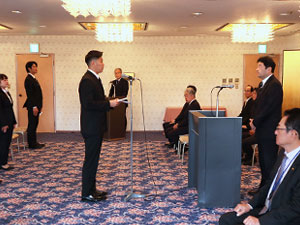 式典で大久保社長は、新入社員代表に辞令を手渡したあと、訓示の中で「昨年、当社では会社が進むべき道を示す『エンジVision2035』を策定した。その中核となる『ありたい姿』の実現に向けて、だれもが笑顔になれる社会の実現に貢献できる企業を目指し取り組んでいく。本日入社された皆さんにも参画してもらいたい」と述べました。さらに、社会人として仕事に取り組むにあたり、次の2点を心掛けてほしいと、新入社員を激励しました。