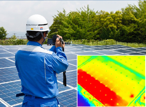 大規模太陽光発電システムにおける故障や不具合の特定は難しく、効率的な点検が課題となっています。当社では、複数の測定・診断手法を効果的な組合せによる診断手法に加え、ドローンを用いた上空からのサーモカメラによる高精度な不具合探査と短時間作業を両立。お客さま発電設備の資産価値維持に貢献いたします。