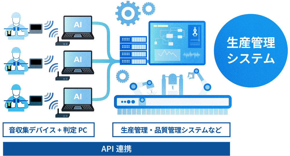 S-Kaleid ISは、検知対象となる設備に応じてAIモデルを構築できるため、コネクタ嵌合に限らず、プレス機や切断機などさまざまな設備の瞬時音に対応可能です。判定結果をデータとして連携・蓄積・活用することで、工程の見える化、さらには生産管理・品質管理の高度化を実現します。